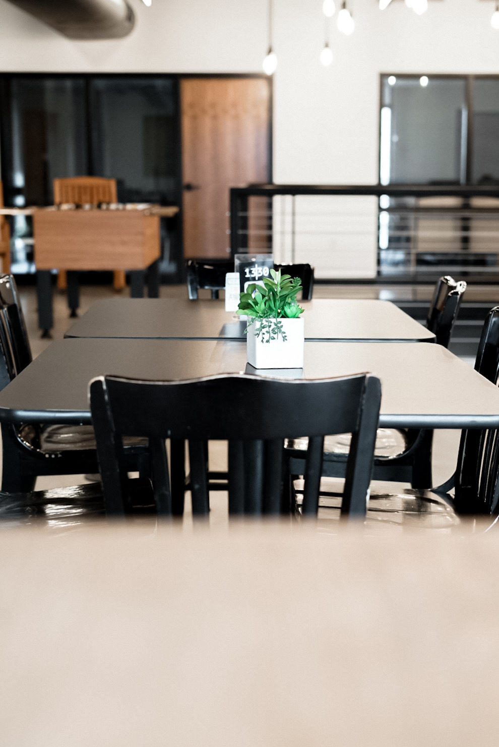 The upstairs “loft-like” space is an open area containing a large TV and long bar-top. With seating for up to 15 guests, this a great area for group projects, a small group, or Bible study.